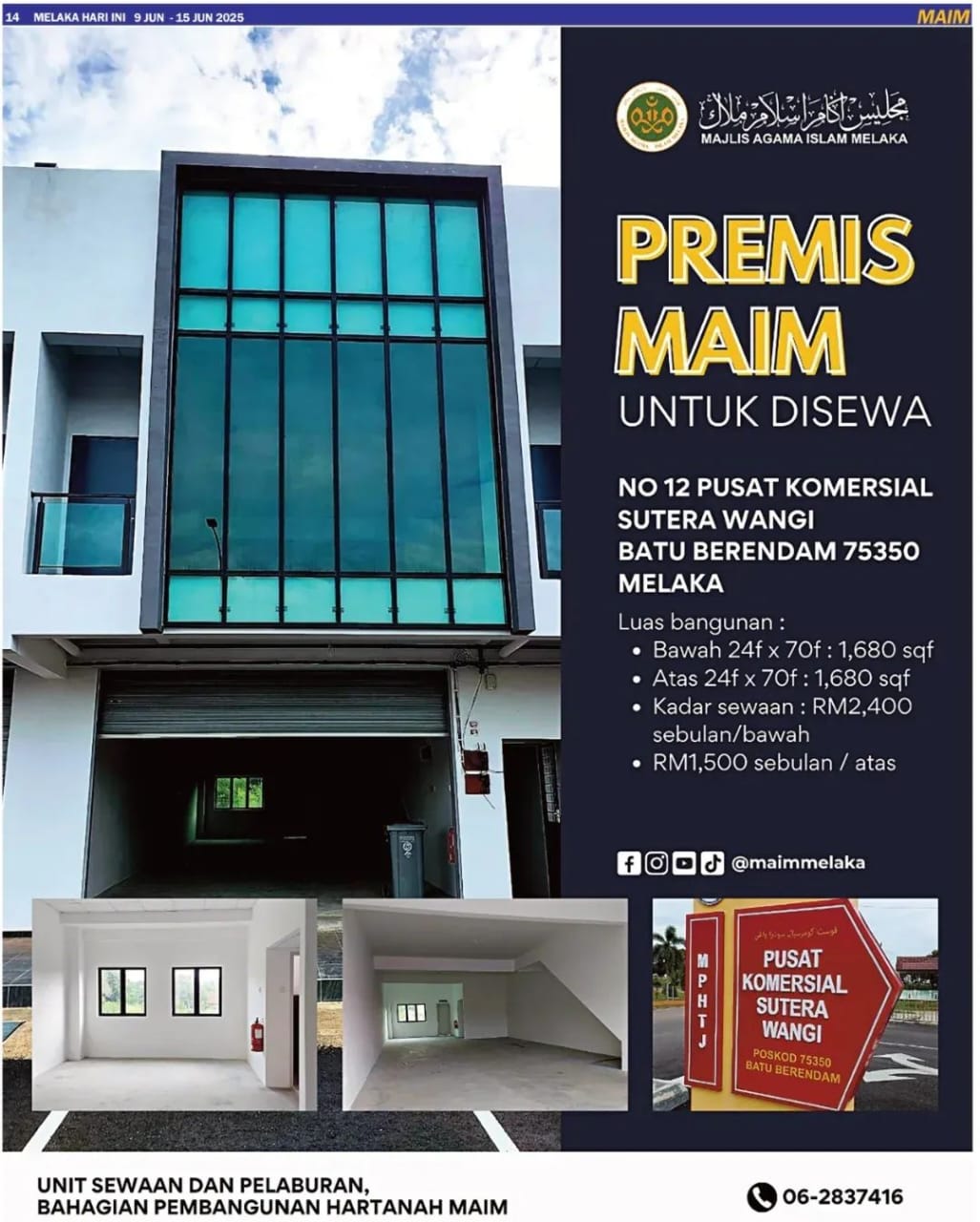 No 12 Pusat Komersial Sutera Wangi, Batu Berendam 75350 Melaka (Premis Atas)