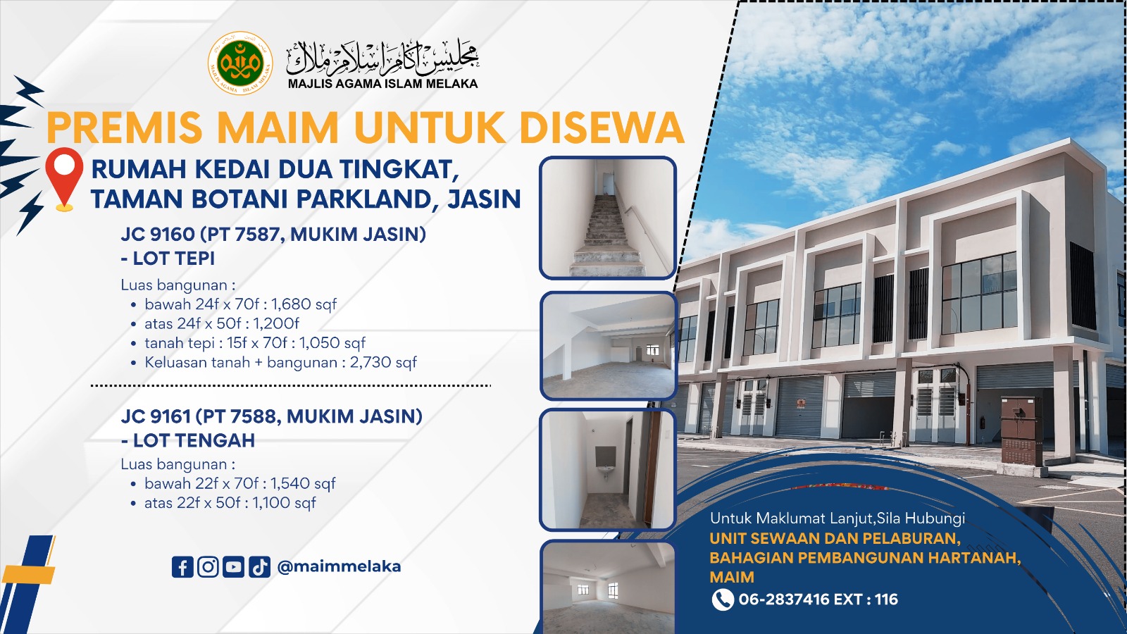 Catatan Untuk permohonan, sila hadir ke Pusat Islam Melaka berhubung Unit Sewa dan Pelaburan MAIM
