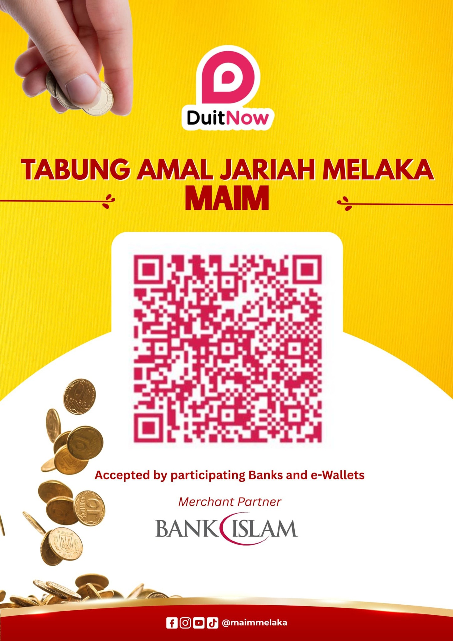 - sedekah/infaq yang diuruskan oleh MAIM bagi memberi peluang kepada masyarakat Islam untuk sama-sama menyumbang wang