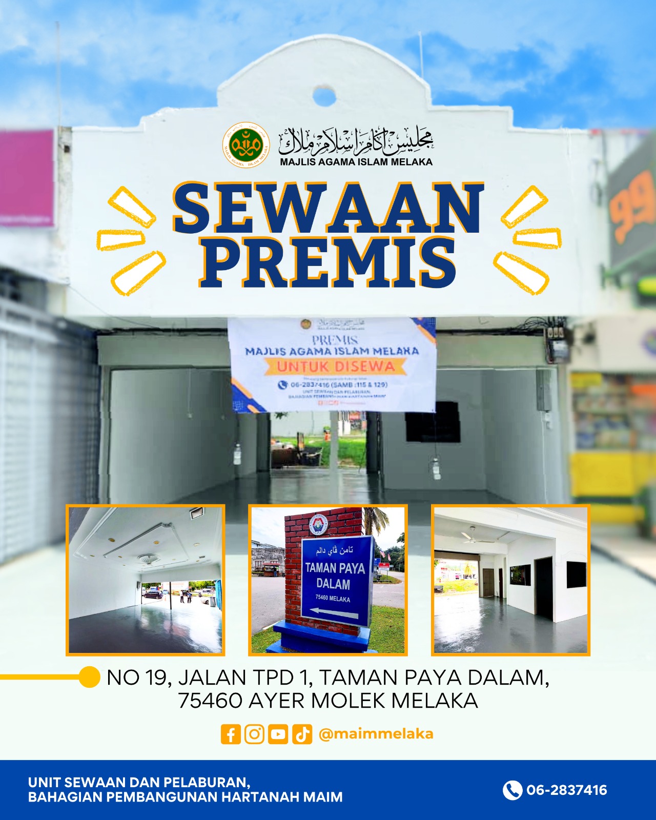 | Catatan | Untuk permohonan, sila hadir ke Pusat Islam Melaka berhubung Unit Sewa dan Pelaburan MAIM | ||